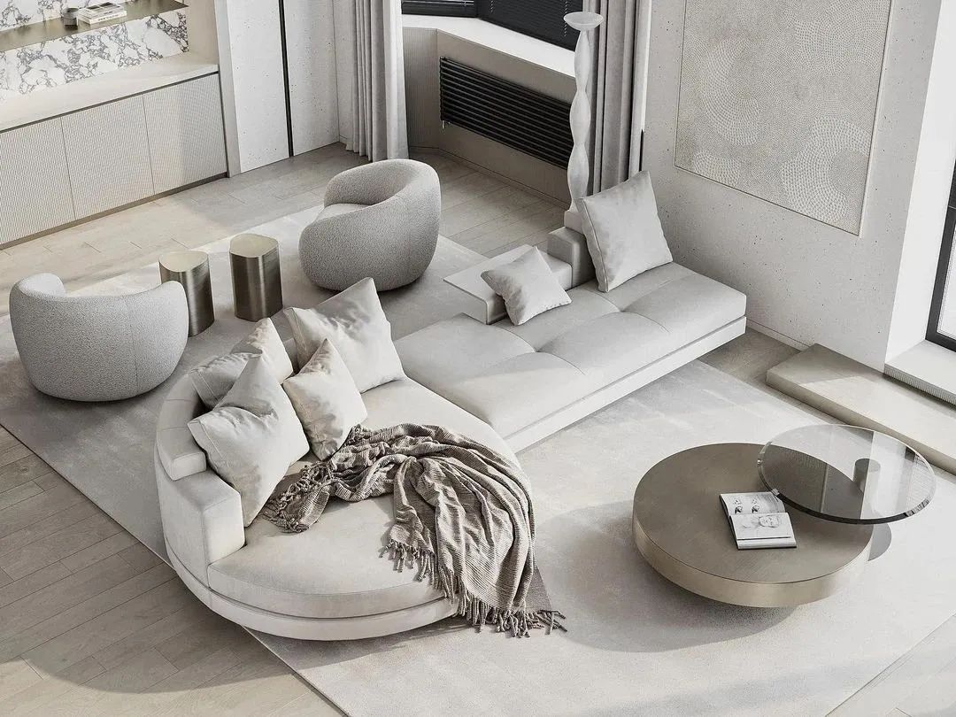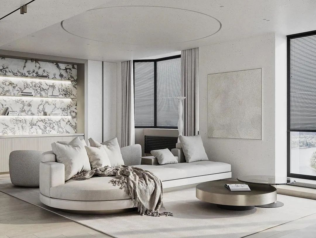 欧洲家具和灯光结合极简主义。公寓主要由三种材质组成:木材,石材灰泥和黄酮,整体追求干净纯粹的极简风格,设计师减少了装饰与色彩元素,塑造出简练又美的空间氛围。