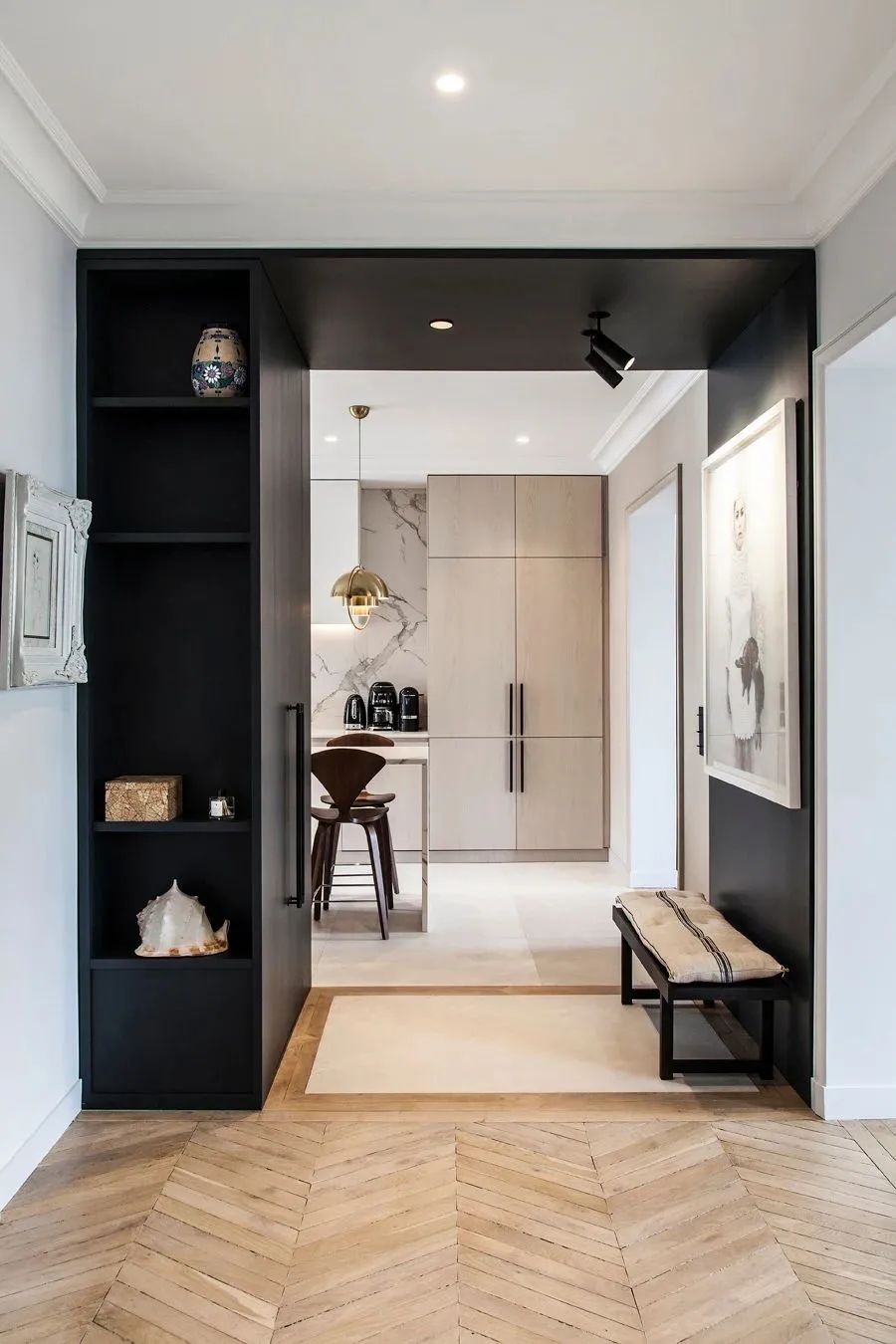 玄关处有很大的空间,以白色为主,墙面浮雕作为简单的空间丰富元素。可爱的熊猫像让回家的心情转换晴天。