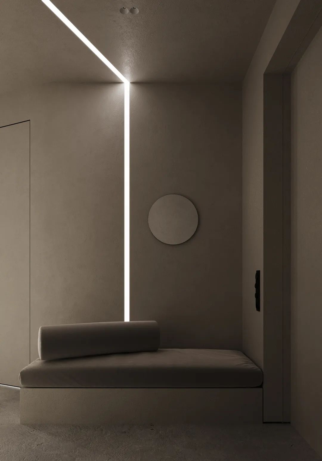 从进入玄关的那一刻起,每个角度都充满了连贯性,暗藏的线性灯带设计,搭配软装家具,让整体看起来更加和谐