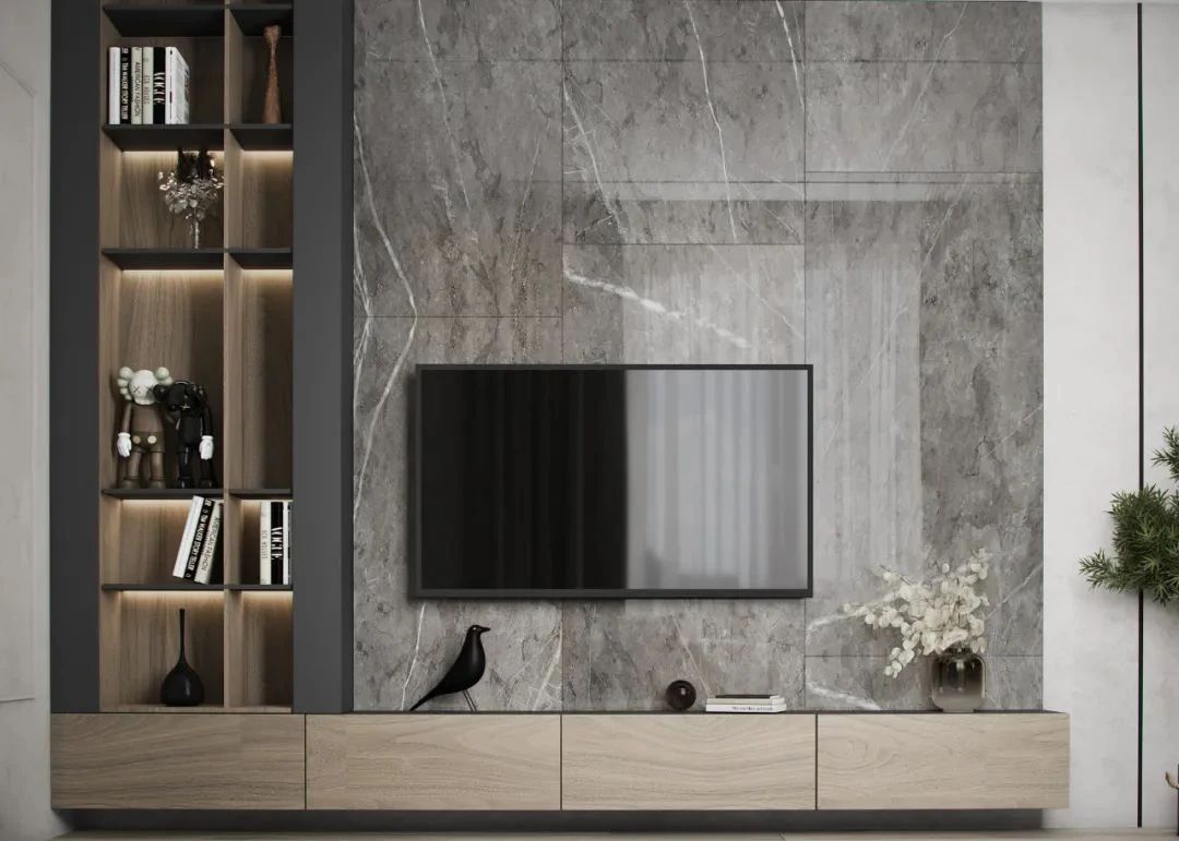 跳脱的橙色在浅灰卧室中显得格外活跃,墙上两盏圆润细致的弧形灯管将室内烘托出一股浪漫的氛围。